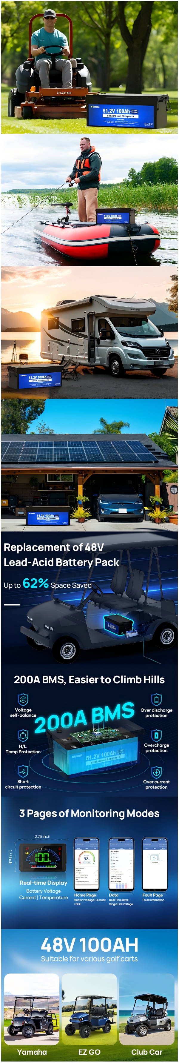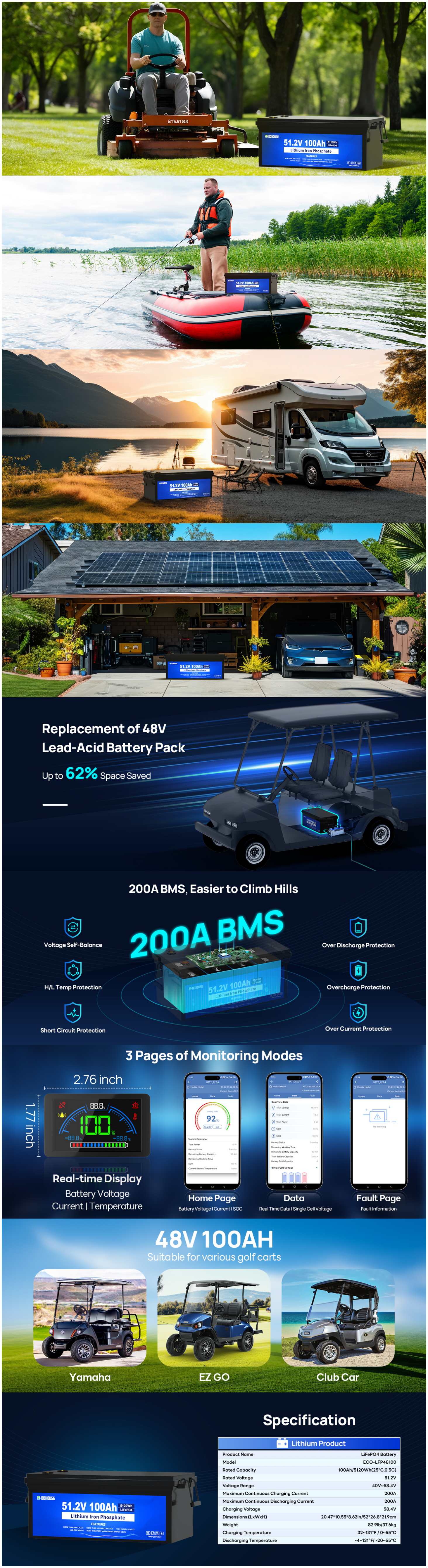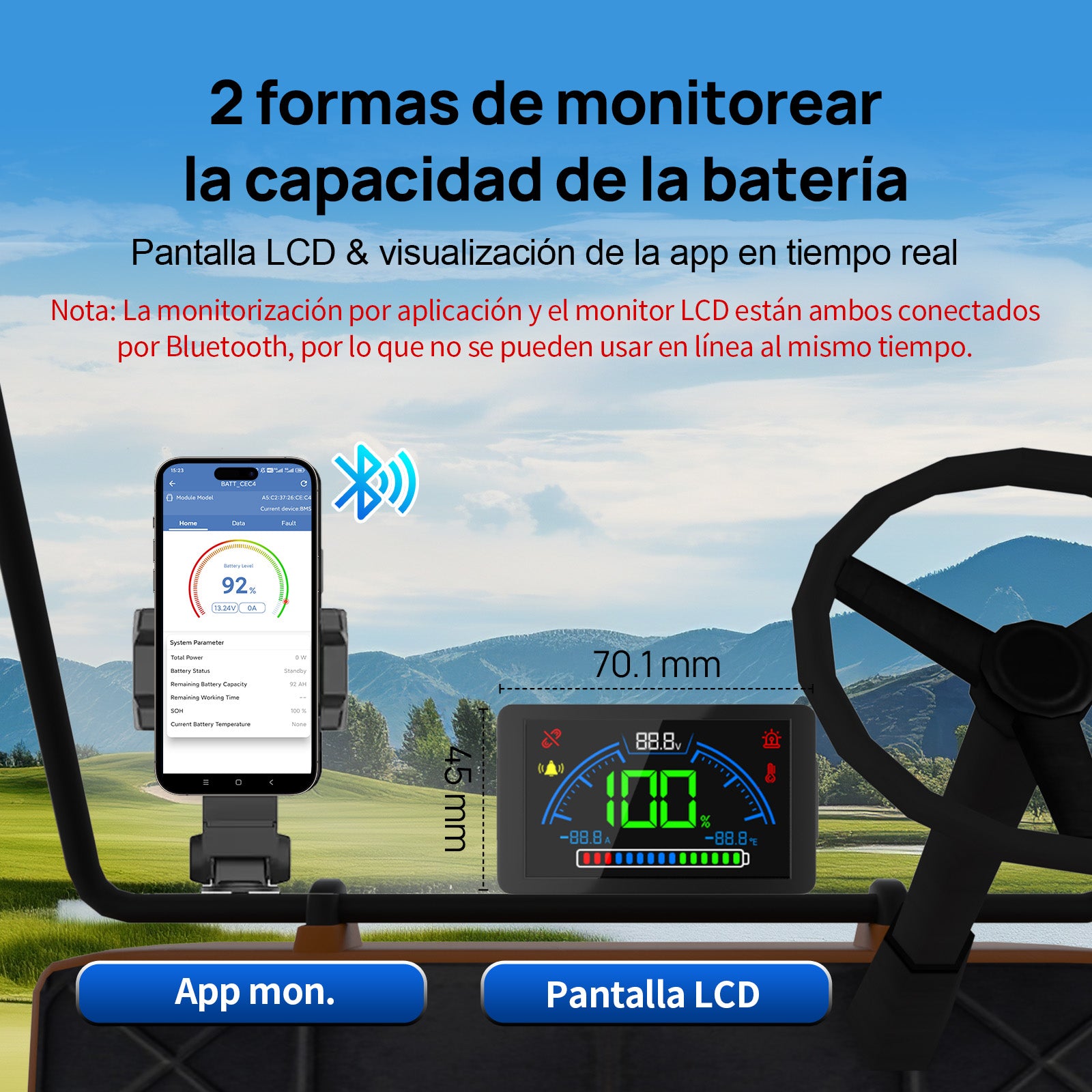 DC HOUSE Smart 48V 100Ah LiFePO4 ABS Plastic Battery - Bluetooth & LCD Monitoring for Golf Carts (No Charger)